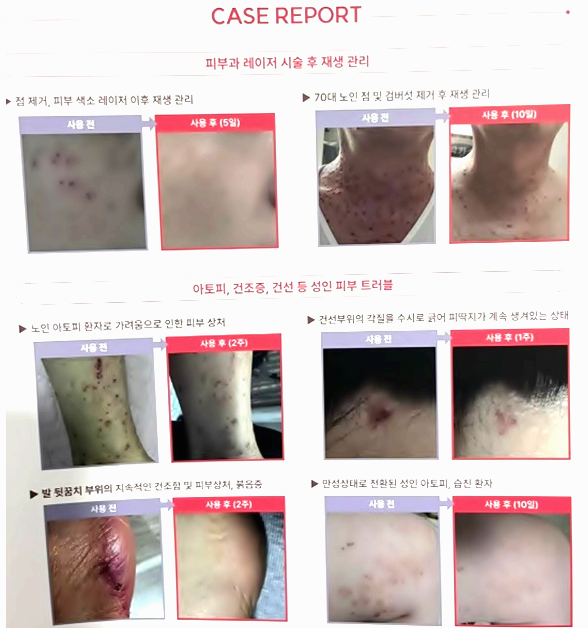 위의 사진처럼 피부과적 시술 후에도 사용 가능하며, 아토피 있는 어린아이들에게 흉터 남기지 않도록 사용이 가능하다는 점이 가장 큰 장점이라 생각됩니다.